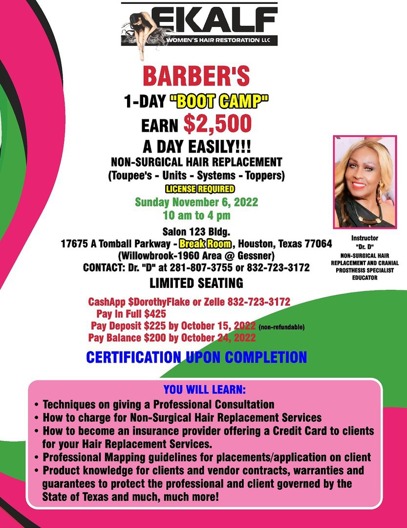 Dorothy Flake Ph.D. Ekalf Hair Loss Solutions LLC www.ekalf.net Direct: 281-807-3755